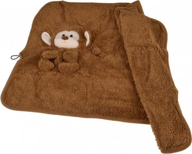Mehka odeja – plišasti prijatelj 2v1, opička, barva moka