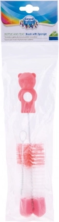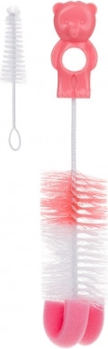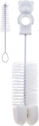 Praktičen set za vsakodnevno higieno otroških stekleničk in cucljev. Velika ščetka z gobico doseže tudi težko dostopna mesta in zagotovi temeljito čiščenje, medtem ko je majhna krtačka idealna za natančno čiščenje cucljev. Ergonomična zasnova, enostavno vzdrževanje in varna uporaba pred sterilizacijo.