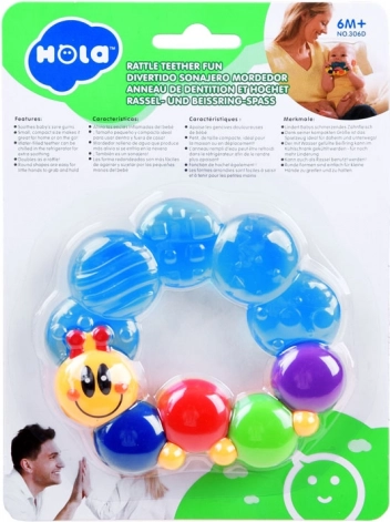 Ljubko grizalo HOLA v obliki gosenice je zasnovano iz vzdržljivih in varnih materialov za vsakodnevno uporabo. Zaradi lahke konstrukcije in premišljene oblike ga otrok zlahka prime ter prenaša iz rokice v rokico. Teksturirani segmenti učinkovito masirajo občutljive dlesni in pomagajo pomiriti nelagodje med rastjo prvih zobkov.