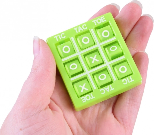 Igra vsebuje premične kocke z narisanimi znaki križcev in krožcev. Dovolj je, da jih pomaknete na pravi znak, in lahko začnete igrati. Igra je v celoti izdelana iz plastike in se zaradi svojih dimenzij (5 x 4,5 x 1 cm) zlahka prilega v žep. Barva igre je izbrana naključno.