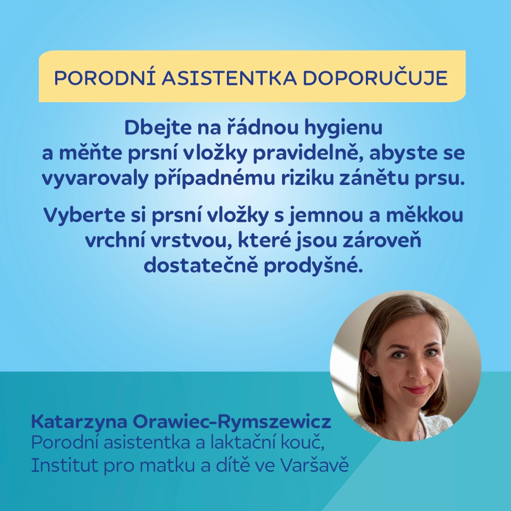Debelina približno 1,3 mm ter mehak, zračen površinski sloj ne dražita občutljivih bradavic in zagotavljata diskreten videz pod oblačili.