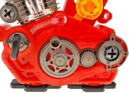 Prozorni deli omogočajo opazovanje zobnikov med delovanjem. Svetlobni in zvočni učinki igri dodajo pristnost in otroke zadržijo v vlogi malega mehanika.