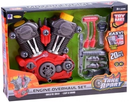 Priložen je bogat komplet orodja, s katerim je motor mogoče večkrat razstaviti in sestaviti. Vse je izdelano iz trpežne plastike, da igra traja dolgo in je enostavna za upravljanje tudi za majhne roke. Odlična ideja za darilo, ki spodbuja fino motoriko, potrpežljivost in ustvarjalno razmišljanje.