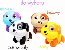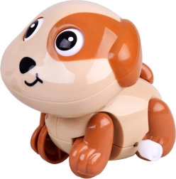 Ta vesel plastičen kužek je odličen spremljevalec za prve raziskave sveta. Po navijanju ključka se požene po tleh, veselo maha z repom in mežika z očmi – vse to motivira otroke k plazenju in aktivni igri.