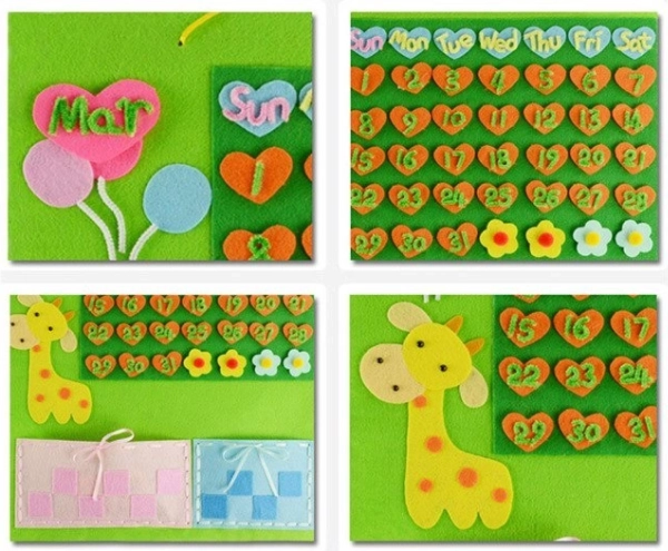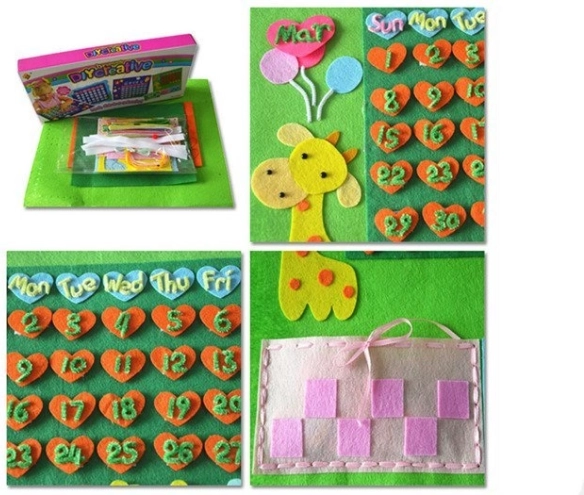 Ta tekstilni ustvarjalni komplet otrokom omogoča, da oblikujejo in okrasijo svoj stenski koledar. S pisanimi filcanimi delci, samolepilnimi elementi in dekoracijami si otroci preprosto sestavijo pregled dni in datumov ter hkrati razvijajo domišljijo in potrpežljivost. Končni koledar je odlična popestritev otroške sobe in pomaga pri dnevni rutini.