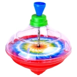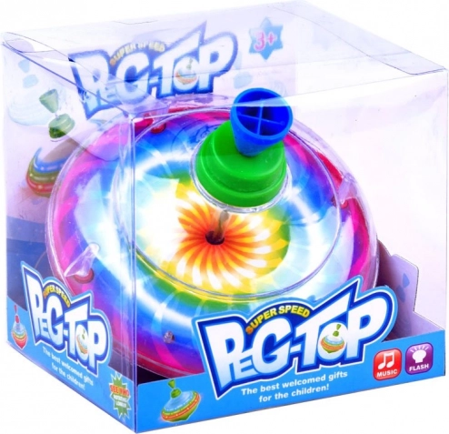 Tradicionalna igrača v moderni izvedbi: barvita vrtavka, ki se ob vrtenju sveti in predvaja veselo glasbo. Enostavno upravljanje s pritiskom na bat zavrti vrtavko okoli lastne osi in pod prozornim pokrovom ustvari očarljiv mavrični učinek. Odporna plastična izvedba, idealna za razvoj fine motorike in koordinacije.