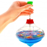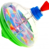 Ta vrtavka z glasbo in lučkami združuje čar klasične igrače s sodobnimi učinki. Po pritisku na zgornji bat se vrtavka zavrti, v prosojni kupoli se prižgejo utripajoče lučke in zazveni vesela melodija. Otroke pritegne vrtinec barv in gibanja, starše pa razveseli enostavnost in vzdržljivost.
