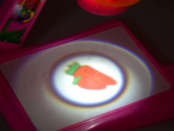 • Vse v enem – 6 flomastrov, 3 diski z vzorci, beležka za risanje, gobica in projektor.