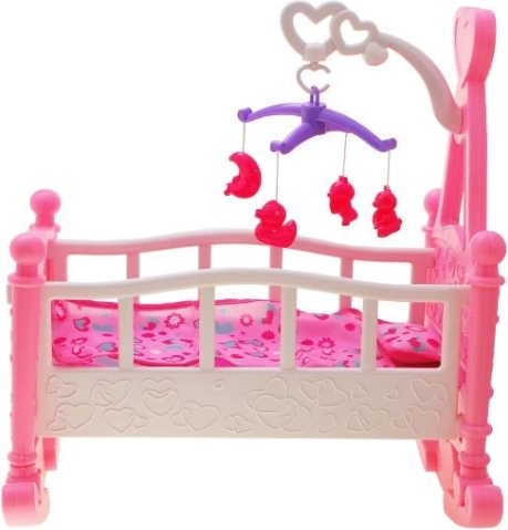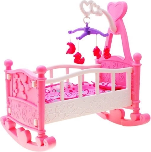 Ljubka zibelka za punčke z vrtiljakom in bogatimi dodatki bo razveselila vsako malo skrbnico. Izdelana je iz trpežne plastike z reliefnimi vzorci, zaradi svoje dolžine pa sprejme punčko do 45 cm. Priložen je tudi komplet za hranjenje, da je igra še bolj realistična. Idealna za otroško sobo, kjer spodbuja domišljijo in razvoj spretnosti. Stabilna konstrukcija, funkcija guganja in popolna oprema jo naredijo za odlično darilo.