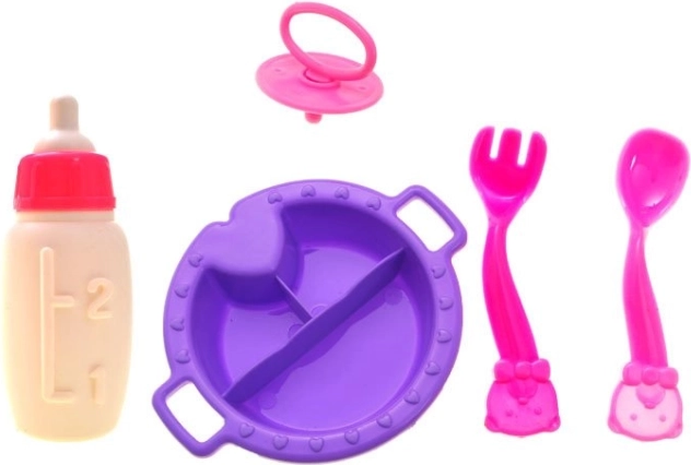 Skledica, žlička, steklenička in dudo omogočajo otrokom realistično skrb za »dojenčka« ter razvijajo domišljijo.