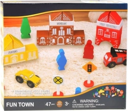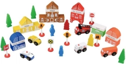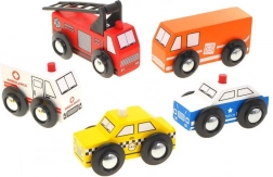 Komplet vključuje reševalno vozilo, taksi, policijski avto in različne figurice za obogatitev igre.