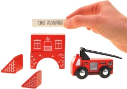 Lesene gradbene kocke Mestno Gasilska postaja so skrbno izdelane s poudarkom na detajlih. Pisani deli pritegnejo pozornost in spodbujajo igro. Te lesene kocke so trpežne in bodo dolgo služile. Izdelane iz naravnih materialov, so popolnoma ekološke.
