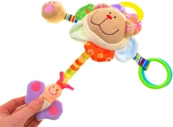 Vsak trak je gibljiv – otrok ga lahko vleče, zvija, stiska in pretika, s čimer razvija motorične sposobnosti ter koordinacijo roka–oko. Vsi elementi so popolnoma varni in izdelani iz dojenčkom prijaznih materialov. Na zadnji strani igrače je praktičen ježek, ki omogoča enostavno pritrditev na posteljico, avtosedež, voziček ali igralno podlogo.