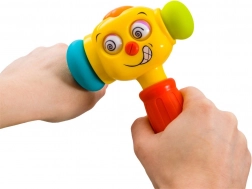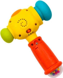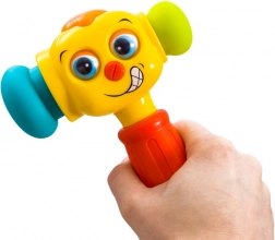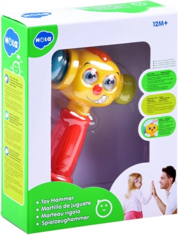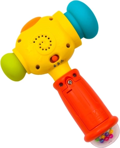 Veselo interaktivno kladivce bo otroke pritegnilo s pisanim dizajnom, smešnim obrazom ter kombinacijo svetlobnih in zvočnih učinkov. Ob pritisku zgornjega gumba predvaja 5 zabavnih melodij, med igro pa zasveti lučka na vrhu. Vsak udarec dodatno sproži učinke, ki podpirajo naravno radovednost in spodbujajo nadaljnje odkrivanje.