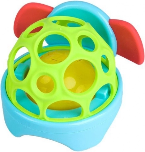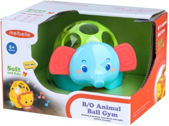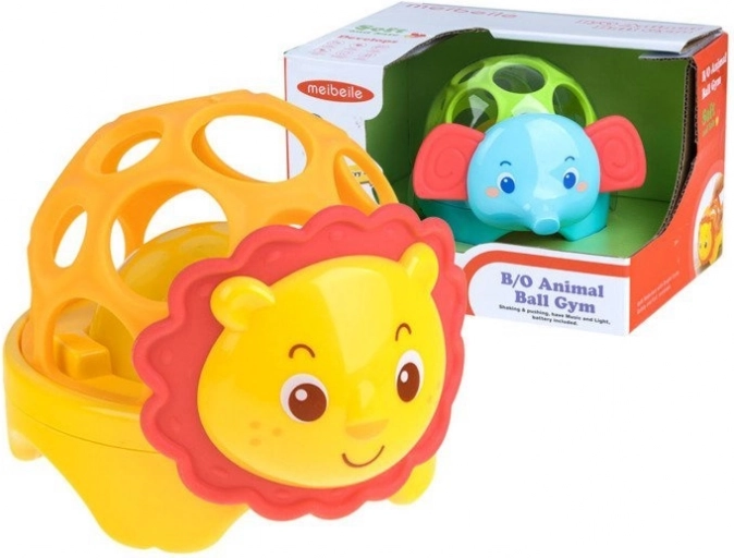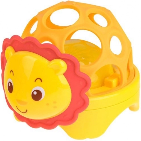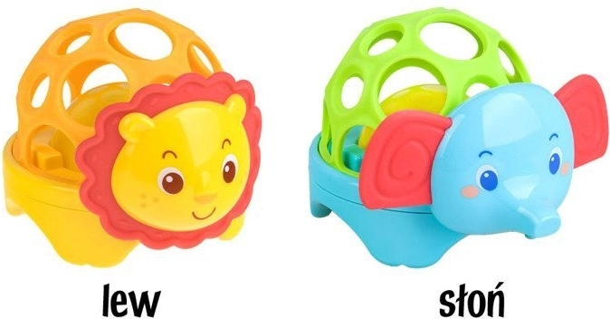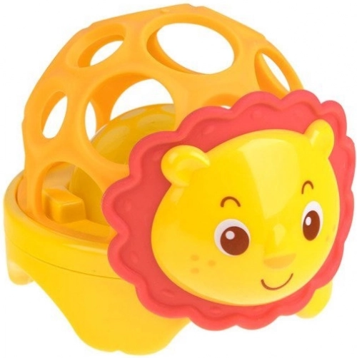Ta lahka in varna igrača v obliki ljubke safari živalce ima prožno, ažurno konstrukcijo z velikimi odprtinami, ki olajšajo prijem z malimi ročicami. V notranjosti je kroglica, ki se ob gibanju sveti in oddaja vesel zvok. Mehka ušeska ali griva vabijo k dotiku in grizenju ter podpirajo senzorično zaznavanje.