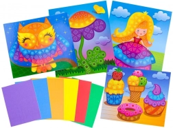Okrasitev slike je enostavna, saj ne potrebujete ostrih orodij. Penaste nalepke se zlahka odstranijo iz šablone in zalepijo po vaši zamisli. Zaradi te kreativne igrače lahko otroci ustvarijo unikatna darila za starše in stare starše.