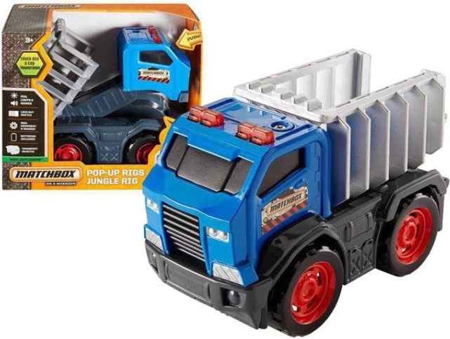 Doživite nepozabno igro z Matchbox Zložljivim Tovornjakom, ki ponuja interaktivne elemente za otroke. Kabina in prikolica se dvigneta, pri čemer vzdušje dopolnjujejo avtentični zvoki in utripanje luči.