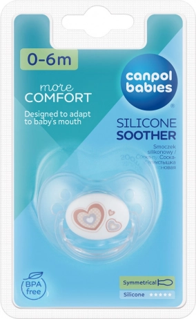 Lahka in varna duda Canpol babies Newborn Baby je zasnovana za najmlajše dojenčke. Simetrična oblika cuclja podpira naravno sesanje in pravilen razvoj neba, prezračevalne odprtine pa zagotavljajo kroženje zraka in zmanjšujejo draženje kože okoli ust.