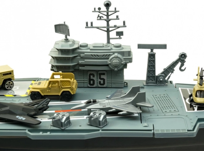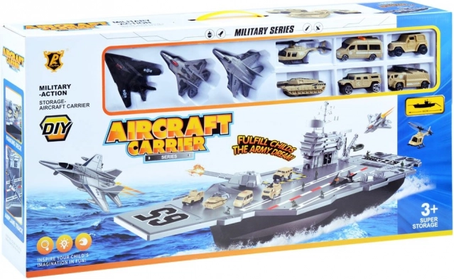 Letalonosilka, dopolnjena z lovskimi letali, helikopterjem, tankom, dodatnimi vozili in figuricami vojakov, zagotovi nešteto igralnih scenarijev in ur zabave.