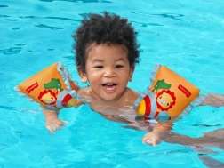 Varnostni ventili in nastavljiv pašček preprečujejo nenamerno zdrsnitev rokavčkov z otrokovih rok med igro v vodi.