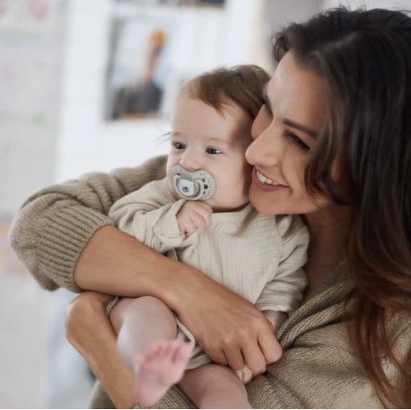 Dinamični dudo LOVI je bil razvit v sodelovanju z nevrologopedi z namenom zagotoviti naraven in zdrav razvoj ustnega neba, zob in dlesni otroka. Silikonski simetrični dinamični dudo LOVI je klinično testiran. Vsi dudiji LOVI ne vsebujejo bisfenola A. Vsi dudiji LOVI so izdelani iz silikona, ki je brez okusa in brez vonja. Silikonski dudiji imajo daljšo življenjsko dobo in se lažje vzdržujejo čisti. Edinsten simetričen dinamičen cuclj se zelo dobro odzračuje in ne deformira otrokovega ustnega neba: - preprečuje refleks grizenja duda - omogoča naravno požiranje sline - podpira zdrav razvoj govora in oblikovanje ugriza - ne deformira otrokovega ustnega neba - zelo dobro se odzračuje. Dinamičen cuclj je izdelan iz neenakomernih plasti silikona, zato se podaljšuje in krči glede na ritem sesanja otroka. Simetrična oblika spominja na materino bradavico. Oblika cuclja omogoča tudi vstavljanje duda v otrokova usta v katerikoli smeri (nima določene zgornje in spodnje strani). Oblikovana izrezana oblika ščitka omogoča otroku prosto dihanje skozi nos. Izdelan je iz varnega materiala, ki ne vsebuje BPA. Edinstven rob ščitka je izdelan iz medicinskega materiala, je prijeten na dotik in preprečuje odtise duda. Luknjice v ščitku omogočajo kroženje zraka, zmanjšujejo nabiranje sline za ščitkom in tako preprečujejo draženje občutljive otroške kože. Obroč na dudi trdno drži, olajša držanje in podajanje duda. Nanjo lahko pripnete verižico ali vrvico. Dudiji vsebujejo edinstven varnostni obroč, ki sveti v temi. Duda je iz higienskih razlogov opremljena s plastičnim pokrovčkom. Plastična škatlica služi kot etui za higiensko shranjevanje dud. Duda LOVI je prejela nagrade končnih uporabnikov. Dudiji so dobavljeni v številnih modernih barvnih potiskih. Komplet vsebuje: 2 kosa dinamičnega duda LOVI, 2 kosa plastičnega pokrovčka za dudo, 1 kos plastične škatlice. Navodila za uporabo: Pred prvo uporabo dudo iz higienskih razlogov sterilizirajte v vreli vodi približno 5 minut. Po ohladitvi iztisnite preostalo vodo iz duda. Pred vsako uporabo dudo umijte v topli vodi. Ne uporabljajte nobenih kemičnih razkužil! Visoke koncentracije teh sredstev lahko poškodujejo plastične dele duda. Nikoli ne namakajte duda v sladkih snoveh ali zdravilih – izpostavljate otroka nevarnosti nastanka okvare zobne sklenine. Dudo uporabljajte največ 1–2 meseca, nato ga iz higienskih in varnostnih razlogov zamenjajte z novim. Če dudo zdrsne otroku v usta, NE PADITE V PANIKO – dudo je konstruiran tako, da ga otrok ne more pogoltniti, in ga lahko v takih primerih varno odstranite. Dudo odstranite čim bolj previdno. Dudo shranjujte v čistem, suhem in zaprtem etuiju. Ne priporočamo uporabe duda za otroka, starejšega od 3 let. Opozorilo! Pomembno za zdravje in varnost vašega otroka! Pred vsako uporabo preverite stanje duda. Posvetite mu posebno pozornost, ko otroku zrastejo prvi zobki. Preverite kakovost cuclja s temeljitim raztezanjem v vse smeri. Ob prvih znakih poškodb dudo takoj zavrzite in ga ne uporabljajte več. Uporabljajte le takšne držala za dude, ki ustrezajo zahtevam standarda EN12586. Nikoli ne pripenjajte duda na različne vrvice, vezalke ali trakove oblačil. Otrok se lahko zaduši. Duda ne puščajte na neposredni sončni svetlobi, v bližini vira toplote ali v razkužilnih sredstvih dlje, kot je priporočeno – lahko povzročite oslabitev cuclja. Odstranjen pokrov hranite izven dosega otroka – preprečite morebitno zadušitev. Silikonski dudo izpolnjuje zahteve: Direktiva Evropskega parlamenta in Sveta 2001/95/ES o splošni varnosti proizvodov, EN 1400-1 Izdelki za nego otrok – Dude za dojenčke in malčke – Del 1: Splošne varnostne zahteve in informacije o izdelku, EN 1400-2 Izdelki za nego otrok – Dude za dojenčke in malčke – Del 2: Mehanske zahteve in preskusi, EN 1400-3 Izdelki za nego otrok – Dude za dojenčke in malčke – Del 3: Kemične zahteve in preskusi.
