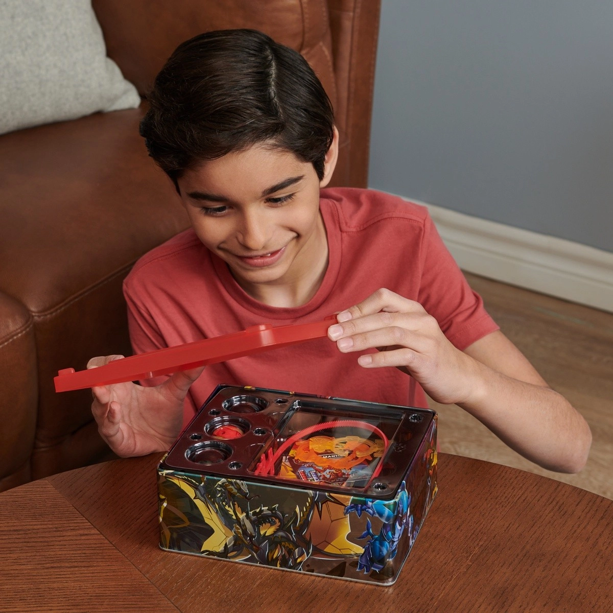 S to zbirateljsko škatlico BAKUGAN imaš vse za bitko na enem mestu. Dvonivojsko shranjevanje pametno sprejme tvoje žogice Bakugan, pakete kart in obroče posebnega napada, da si vedno pripravljen izzvati nasprotnika. Del kompleta je figurica Special Attack Mantid, ki jo aktiviraš s pomočjo XL vlečne vrvice – zavrti, odpri in dominiraj v areni na priloženih portalnih kartah.