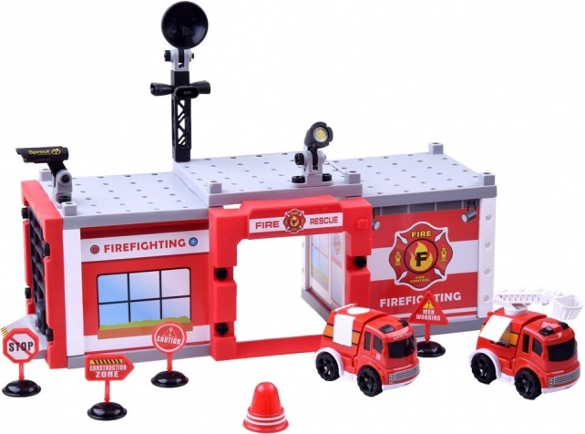 Celovit set z deli za stavbo, garažo in dodatke. Otroci si zlahka sestavijo bazo za vse gasilske misije in uživajo v realistični igri.