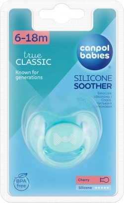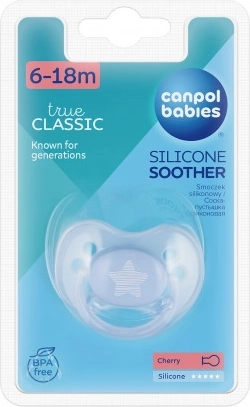 Silikonska duda PASTELS je izdelana iz prozornega silikona, ki je popolnoma brez okusa in vonja. Duda ne vsebuje BPA. V pakiranju 1 kos. Prednosti dud Canpol babies: dobro se odzračujejo; o tem se lahko prepričate s stiskom cuclja (te lastnosti ne podcenjujte – slabo odzračevanje dudo vodi v deformacijo neba in ugriza otroka). Prezračevalne odprtine v ščitniku omogočajo prost pretok zraka, odvajanje sline in tako preprečujejo draženje kože okoli ust. Varnostni obroč na dudi je trdno pritrjen, otroku omogoča udoben oprijem, staršem pa lažje pripenjanje klipa ali verižice za dudo. Dude so na voljo v privlačnih pastelnih barvah in domiselnih dizajnih. Dopolnite dudo z etuijem za dudo v enakem dizajnu. Navodila za uporabo: Pred prvo uporabo dudo iz higienskih razlogov sterilizirajte v vreli vodi približno 5 minut. Po ohladitvi iztisnite preostalo vodo iz dude. Pred vsako uporabo dudo temeljito operite v topli vodi. Ne uporabljajte antibakterijskih ali kemičnih čistil. Pretirana uporaba čistil lahko poškoduje plastične dele. Nikoli ne namakajte dude v sladke snovi ali zdravila – otroka izpostavljate nevarnosti nastanka okvar sklenine. Dudo uporabljajte največ 1–2 meseca, nato jo iz higienskih in varnostnih razlogov zamenjajte. Če dudo otroku potegne v usta, NE PANICIRAJTE – zasnovana je tako, da je otrok ne more pogoltniti, zato jo lahko varno odstranite iz ust. Dudo odstranjujte čim bolj previdno. Hranite jo v čistem, suhem in zaprtem etuiju. Priporočamo, da dud ne uporabljate pri otrocih, starejših od 3 let. Pomembno! Za varnost in zdravje vašega otroka! Pred vsakim ponudbo otroku preverite kakovost dude. Preverite kakovost cuclja s temeljitim raztezanjem v vse smeri. Ob prvih znakih poškodb dudo takoj zavrzite in je ne uporabljajte več. Uporabljajte le takšne klipse in verižice za dudo, ki ustrezajo zahtevam standarda EN 12586. Nikoli ne pripenjajte dude na različne vrvice, vezalke ali trakove oblačil – otrok se lahko zaduši. Dude ne puščajte na neposredni sončni svetlobi, v bližini vira toplote ali v razkužilnih sredstvih dlje, kot je priporočeno – to lahko oslabi cuclj. Odstranjen pokrov hranite izven dosega otroka – s tem preprečite morebitno zadušitev. Duda ustreza zahtevam: Direktiva Evropskega parlamenta in Sveta 2001/95/ES o splošni varnosti proizvodov. EN 1400-1 Izdelki za nego otrok – Dude za dojenčke in majhne otroke – Del 1: Splošne varnostne zahteve in informacije o izdelku. EN 1400-2 Izdelki za nego otrok – Dude za dojenčke in majhne otroke – Del 2: Mehanske zahteve in preskusi. EN 1400-3 Izdelki za nego otrok – Dude za dojenčke in majhne otroke – Del 3: Kemične zahteve in preskusi.