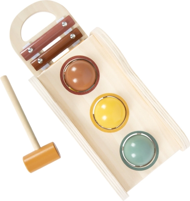 Ta lesena igrača združuje multifunkcijsko igro z lepim dizajnom. Tri barvne krogle otroci s kladivcem potisnejo skozi odprtino, pri kotaljenju pa sprožijo tone vgrajenega ksilofona. Glasbeni del lahko enostavno odstranite in uporabljate samostojno – idealno za prve glasbene korake.