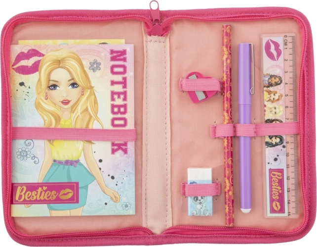 Odpravite se v šolo s tem stilskim šolskim peresnikom Besties, ki vsebuje vse, kar potrebujete: ravnilo, šilček, pero, svinčnik, radirko in beležko.
