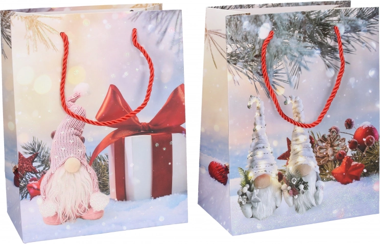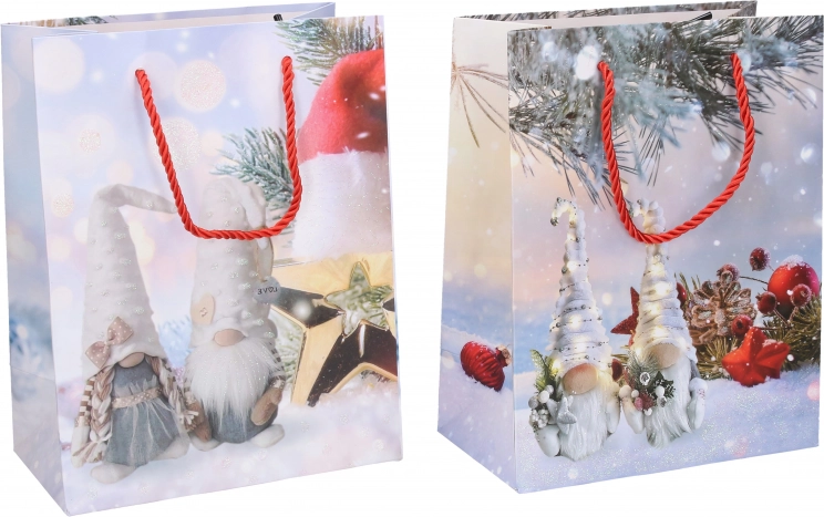 Poenostavite si zavijanje daril s to božično darilno vrečko velikosti S. Mere 24 × 18 × 10 cm so idealne za manjša darila, kozmetiko ali dodatke. Štirje različni motivi ustvarijo pravo praznično vzdušje.