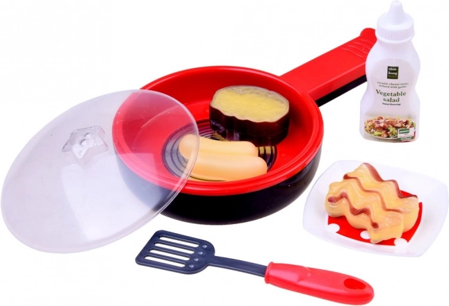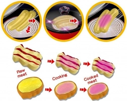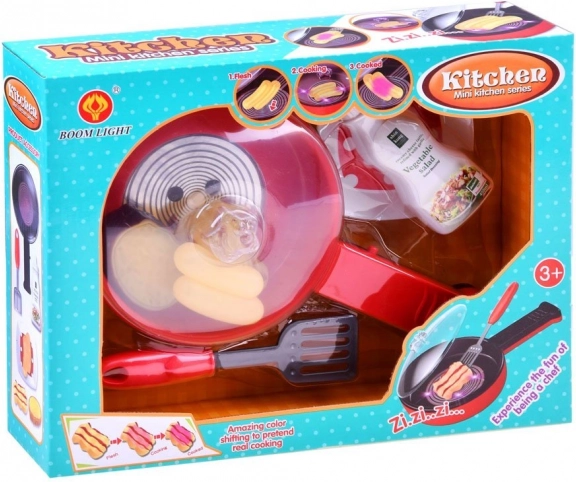 Ta kuhinjski set ponuja čudovito zabavo za vsakogar otroka, ki rad uživa v kulinaričnih doživetjih. Ponev, ko pritisnete gumb na ročaju, sveti in oddaja zvoke ocvrtih jedi, kar naredi igro bolj realistično. Poleg tega ocvrti izdelki spreminjajo barvo pod vplivom svetlobe na ponvi.
