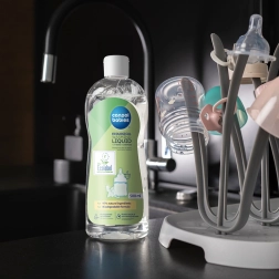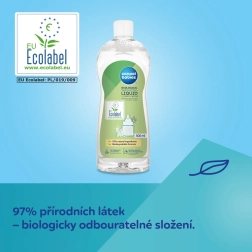 Nežno, a zelo učinkovito sredstvo za vsakodnevno pomivanje otroških stekleničk in cucljev. Sestava iz 97 % naravnih sestavin zlahka odstrani ostanke mleka, kaš in sokov, brez dišav in barvil, z nevtralnim pH in dermatološko testirano formulo. Biološko razgradljivo in certificirano z EU Ecolabel za prijaznost do kože in narave.