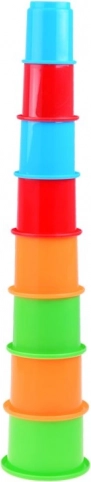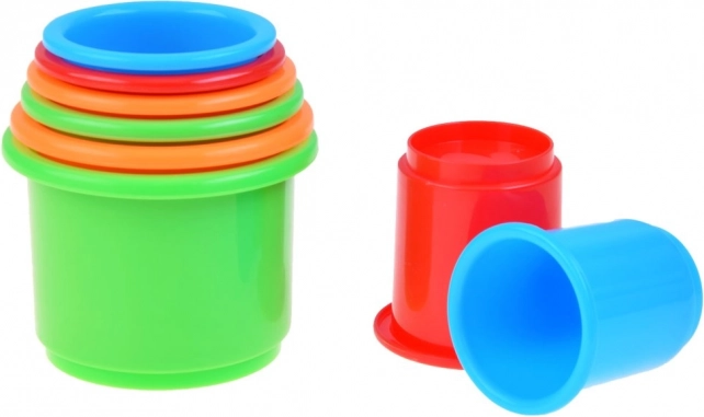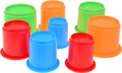 Set vsebuje 8 lončkov v živih barvah, ki se zlagajo eden v drugega in prihranijo prostor. Dobavljeno v barviti darilni škatli – odlična ideja za rojstnodnevno darilo in kot prva razvojna igrača.