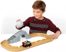 Napeta trasa z gorskim predorom in veliko kroglo preizkusi spretnosti malih voznikov in prinese obilico akcijske zabave.