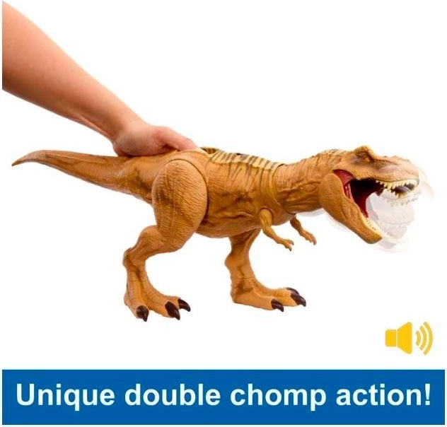 Akcijska figurica T‑Rexa iz edicije Jurassic World prinaša realistične zvoke rjovenja, novo napadalno funkcijo z odprtim gobcem in obračanjem glave ter odstranljivo sledenjsko napravo za pustolovščine na terenu. Z dolžino približno 48 cm in višino 17 cm bo navdušila male in velike ljubitelje dinozavrov ter ponudila tudi razširjeno digitalno igro v aplikaciji Jurassic World Facts po skeniranju skritega DNA oznake.