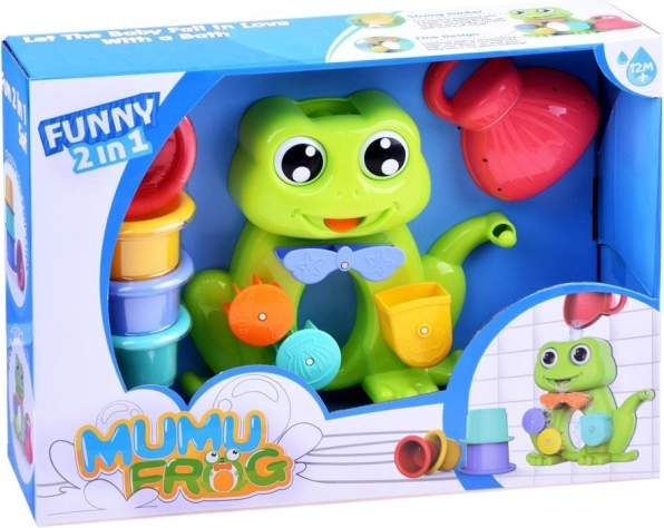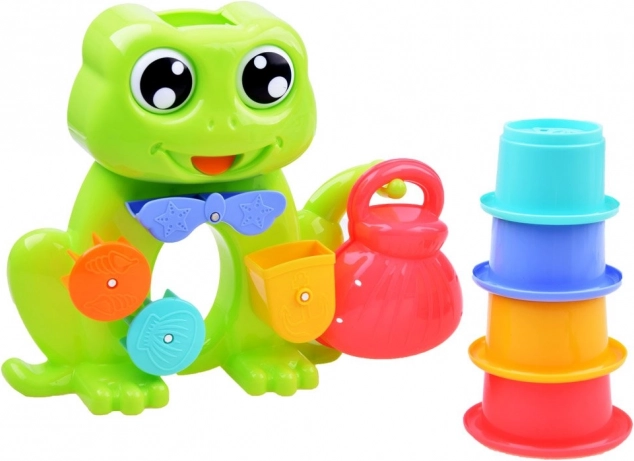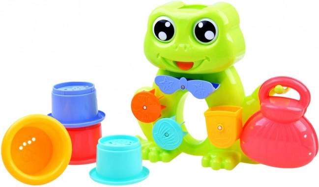 Prisrčna kopalna žabica prinaša otrokom ob kopanju veliko zabave. Vlivajte vodo v žabjo glavo in opazujte kaskado vrtečih se bobnov, ki ustvarja vesele vodne učinke. Priloženi so 4 barviti zložljivi lončki za vlivanje, razvrščanje in sestavljanje, ki spodbujajo fino motoriko, koordinacijo in ustvarjalnost.