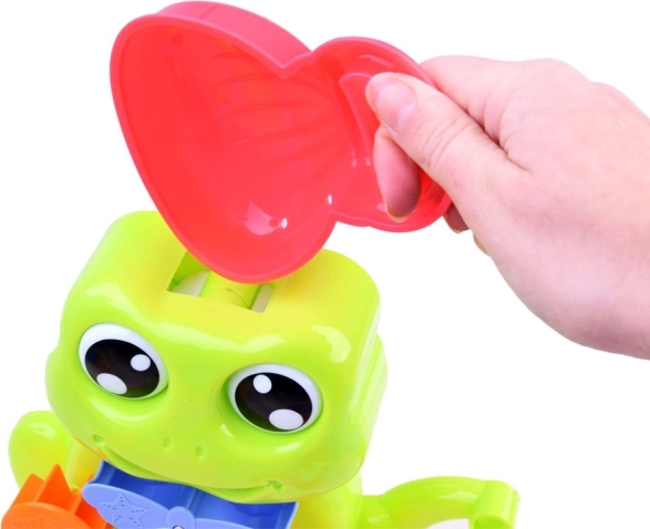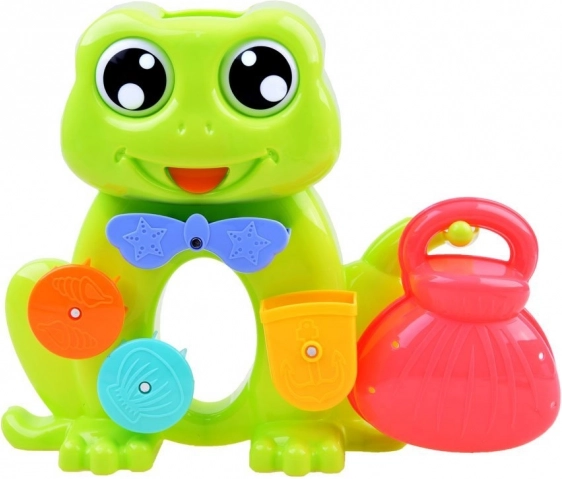 Vesela žaba z velikimi očmi in gumbi pritegne otroke in jih motivira k samostojnemu raziskovanju vodnih učinkov.