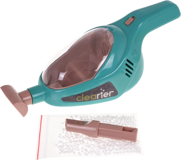 Interaktivni ročni sesalnik na 3× AA (niso priložene) ima svetlobno osvetlitev notranjosti, realističen zvok sesanja in pravo funkcijo sesanja drobnih polistirenskih kroglic. Zahvaljujoč zamenljivim nastavkom (sesalni in ozki nastavek) lahko otroci preizkusijo različne scenarije čiščenja.