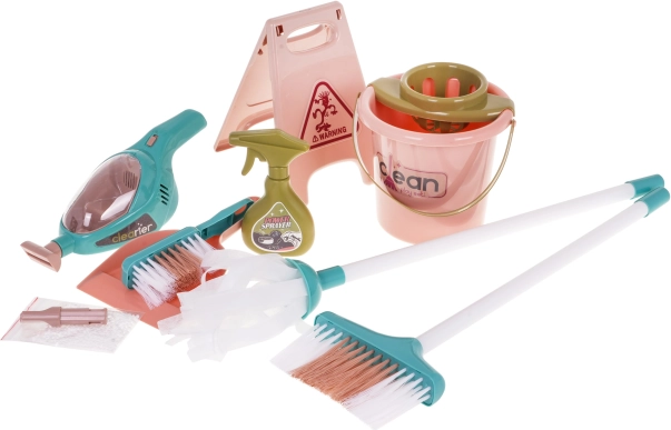- voziček za sestavljanje, ročni sesalnik, vedro z mopom, metla, krtača, lopatka, ročna metlica, sprej – atrapa, opozorilna tabla, polistirenske kroglice, zamenljivi nastavki za sesalnik (sesalni in ozki), vreča za odpadke, dekorativne nalepke