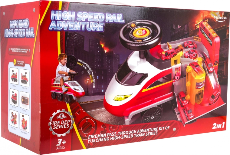 Interaktivni poganjalec-lokomotiva 2v1 združuje vožnjo in bogat igralni set na temo gasilcev. Zaradi robustne, netoksične plastične konstrukcije, sprednjih vrtljivih koles in svetlečih sprednjih luči je idealen za igro doma in na prostem. Za zabavo skrbita svetlobni gumb na volanu in zadnji glasbeni panel z melodijami, zgodbami in zvoki živali (v angleščini).
