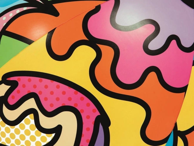 Žoga je okrašena z barvnimi in veselimi motivi, ki prinašajo veselje in privabljajo pozornost.