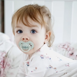 Dinamični dudel LOVI je bil razvit v sodelovanju z nevrologopedi z namenom zagotoviti naraven in zdrav razvoj neba, zob in dlesni otroka. Simetrični dinamični silikonski dudel LOVI je bil klinično preizkušen. Vsi dudlji LOVI ne vsebujejo bisfenola A. Vsi dudlji LOVI so izdelani iz silikona, ki je brez okusa in vonja. Silikonski dudlji imajo daljšo življenjsko dobo in jih je lažje ohranjati čiste. Edinstvena simetrična dinamična cuclja se zelo dobro odzračuje in ne deformira otrokovega neba: - preprečuje refleks grizenja dudo - omogoča naravno požiranje sline - podpira zdrav razvoj govora in oblikovanje ugriza - ne deformira otrokovega neba - zelo dobro se odzračuje. Dinamična cuclja je izdelana iz neenakomernih plasti silikona, zato se podaljšuje in krči glede na ritem sesanja otroka. Simetrična oblika spominja na materino bradavico. Oblika cuclje omogoča, da se dudel vstavi v otrokova usta v katerikoli smeri (nima določene zgornje in spodnje strani). Oblikovana izreza na ščitniku omogočata otroku prosto dihanje skozi nos. Izdelan je iz varnega materiala, ki ne vsebuje BPA. Edinstven rob ščitnika je iz medicinskega materiala, prijeten na dotik in preprečuje odtise dudo. Odprtine v ščitniku omogočajo kroženje zraka, preprečujejo nabiranje sline za ščitnikom in s tem zmanjšujejo draženje občutljive otroške kože. Obroč na dudlu je trden, olajša držanje in podajanje dudo. Na njega lahko pritrdite verižico ali trak. Dudel je iz higienskih razlogov opremljen s plastičnim pokrovčkom. Plastična škatlica služi kot etui za higiensko shranjevanje dudljev. Dudlji LOVI so prejeli nagrade končnih potrošnikov. Dudlji so dobavljeni v številnih modernih barvnih potiskih. Komplet vsebuje: 2 kosa dinamičnih dudljev LOVI, 2 kosa plastičnega pokrovčka za dudel, 1 kos plastične škatlice. Navodila za uporabo: Pred prvo uporabo dudel iz higienskih razlogov sterilizirajte v vreli vodi približno 5 minut. Po ohladitvi iztisnite preostalo vodo iz dudla. Pred vsako uporabo dudel operite v topli vodi. Ne uporabljajte nobenih kemičnih razkužil! Visoke koncentracije teh pripravkov lahko poškodujejo plastične dele dudla. Nikoli ne namakajte dudla v sladkih substancah ali zdravilih – otrok je izpostavljen tveganju za nastanek okvare zobne sklenine. Dudel uporabljajte največ 1–2 meseca, nato ga iz higienskih in varnostnih razlogov zamenjajte z novim. Če dudel otroku zaide v usta, NE PANICIRAJTE – dudel je zasnovan tako, da ga otrok ne more pogoltniti in ga lahko v takih primerih varno odstranite. Dudel odstranjujte čim bolj previdno. Dudel shranjujte v čistem, suhem in zaprtem etuiju. Ne priporočamo uporabe dudla pri otrocih starejših od 3 let. Opozorilo! Pomembno za zdravje in varnost vašega otroka! Pred vsakim ponudbo otroku preverite stanje dudla. Posvetite dudlu posebno pozornost, ko otroku zrastejo prvi zobki. Preverite kakovost cuclje z natančnim raztezanjem v vse smeri. Ob prvih znakih poškodbe dudel takoj zavrzite in ga ne uporabljajte več. Uporabljajte samo takšne držala za dudel, ki ustrezajo zahtevam standarda EN 12586. Nikoli ne pritrdite dudla na različne vrvice, vezalke ali trakove oblačil. Otrok se lahko zaduši. Dudla ne puščajte na neposredni sončni svetlobi, v bližini vira toplote ali v razkužilnih sredstvih dlje, kot je priporočeno – to lahko povzroči oslabitev cuclje. Snemljen pokrov hranite zunaj dosega otroka – s tem preprečite možno zadušitev. Silikonski dudel ustreza zahtevam: Direktiva Evropskega parlamenta in Sveta 2001/95/ES o splošni varnosti proizvodov, EN 1400-1 Izdelki za nego otrok – Dudli za dojenčke in majhne otroke – Del 1: Splošne varnostne zahteve in informacije o izdelku, EN 1400-2 Izdelki za nego otrok – Dudli za dojenčke in majhne otroke – Del 2: Mehanske zahteve in preskusi, EN 1400-3 Izdelki za nego otrok – Dudli za dojenčke in majhne otroke – Del 3: Kemične zahteve in preskusi.