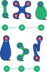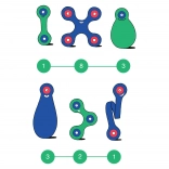 Samo 18 lahkih kosov, iz katerih sestavite desetine oblik. Enostavno jih pospravite v nahrbtnik in vzamete s seboj kamorkoli.
