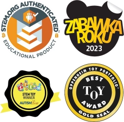 Podpira prostorsko zaznavo, fino motoriko in STEAM veščine. Vodoodporni deli zdržijo tudi intenzivno igro.