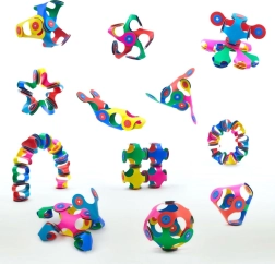 Univerzalni deli v obliki štiriperesne deteljice se povezujejo v ploske in prostorske modele. Zgradite most, zapestnico, žogico ali vetrnico in oblike spreminjajte v hipu.