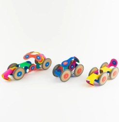 CLIXO Wheel Creator je prilagodljiva magnetna sestavljanka za otroke, stare 6–10 let, ki razvija kreativnost, prostorsko zaznavanje in fino motoriko. Zahvaljujoč vrtljivim magnetom z zaklepom v 24 položajih modeli dobro držijo obliko in prenesejo dinamično igro. Lesena kolesa oživijo vaše stvaritve – od avtomobilov in vlakov do simpatičnih živalic – vse v živahnih mavričnih barvah.