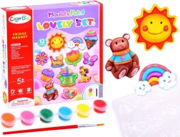 Ta DIY set prinaša otrokom veselje do ustvarjanja od prvega mešanja mavca do končnega barvanja. Kalupi vključujejo priljubljene motive, kot so sonce, rože, metulji, mavrice, sladoledi, košarice, medvedki, zalivalke, mačke in napis LOVE. Končane stvaritve preprosto opremite z magnetnim trakom in lahko okrasijo hladilnik, tablo ali katerokoli kovinsko površino.