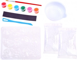 Set vsebuje mavec, kalupe, skodelico, lopatico, 6 barv, čopič, magnetni trak in navodila. Dovolj je, da odprete in začnete ustvarjati.