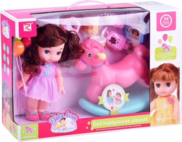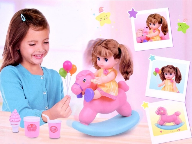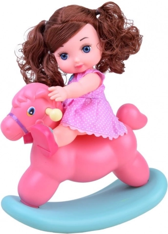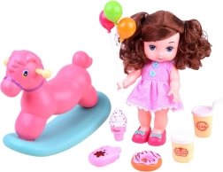 Doživite dogodivščine s to prisrčno lutko, ki je popolna družabnica za igrive trenutke. Dolgi kodrasti lasje in živ izraz dodajajo lutki realizem, medtem ko mehka, barvita oblačila obljubljajo modno zabavo. Rožnati gugalni konjiček ne nudi le podpore za ravnotežje, temveč je tudi odličen dodatek za dekliško sobo.